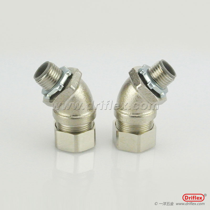 产品: 浏览次数:0铜镀镍45度弯头外螺纹金属软管连接器内径12到51mm